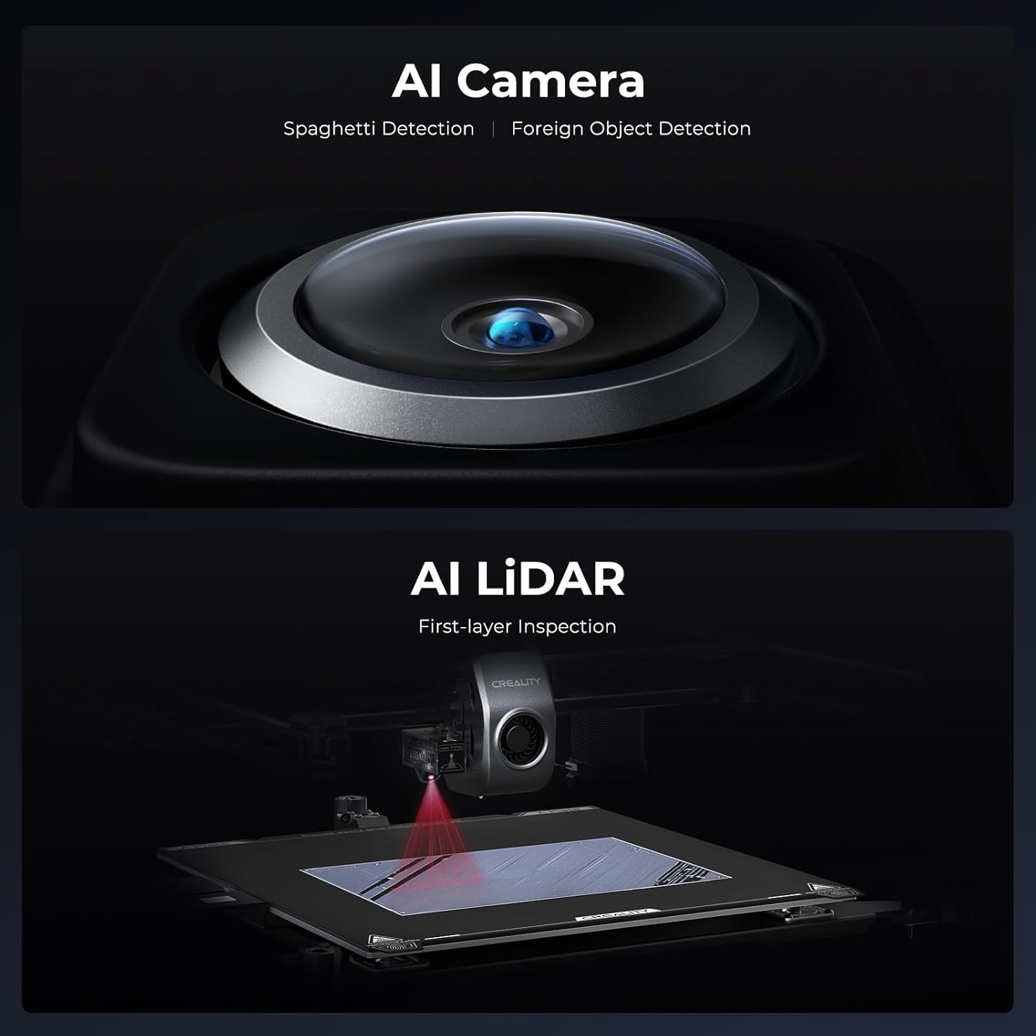 - Smart AI Monitoring: LiDAR and dual cameras help catch first-layer issues and failures before they waste time and filament.
