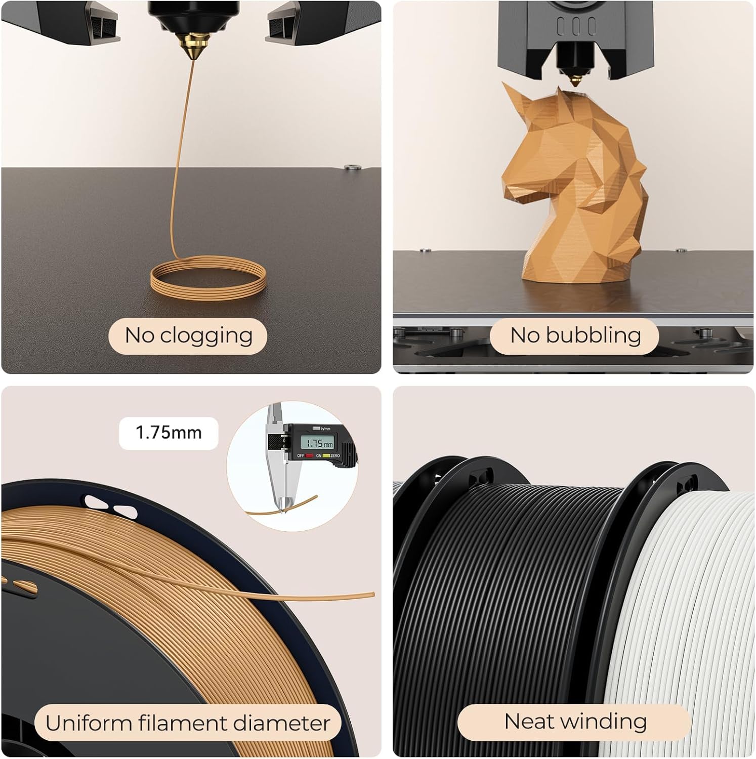 - Keep filament dry: Store sealed when not in use and dry if needed to maintain consistent extrusion and surface finish